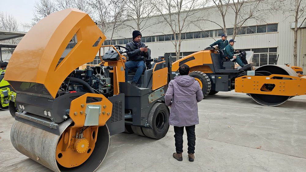12月24日,某國外客戶2人來我廠參觀考察,在工作人員的陪同下,參觀了我廠生產(chǎn)車間與展廳并試駕小型壓路機,詳細向業(yè)務人員了解各個型號的配置與參數(shù),對我廠生產(chǎn)的壓路機、移動照明車,滑移裝載機等產(chǎn)品表現(xiàn)出濃厚興趣,初步達成合作意向